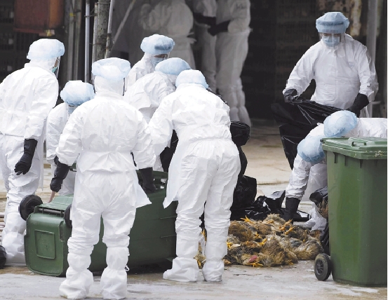 12月21日,香港特区政府渔农自然护理署工作人员在扑杀家禽。 新华社发