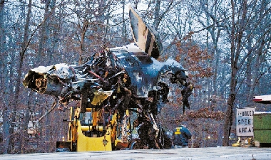 12月20日,一架小型飞机在美国新泽西州北部的287号州际公路上坠毁,机上5人全部丧生。图为飞机残骸被吊起。 新华社发