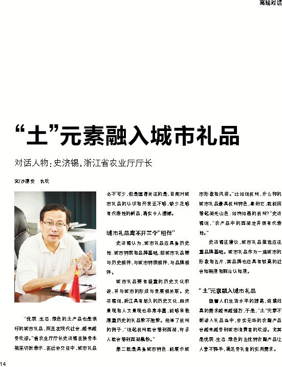 第二就是具备城市特色、能展示城市形象和风姿。“比如说杭州,什么样的城市礼品最具杭州特色,拿到它,就能回想起湖光山色、如诗如画的杭州?”史济锡说,“农产品中的西湖龙井很有代表性。”