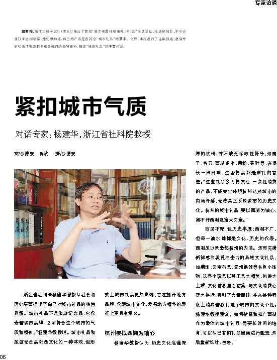 编者按:浙江日报于2011年8月推出了首届“浙江省最佳城市礼(名)品”推选活动,报道见报后,不少企业打来咨询电话,他们想知道,自己的产品是否符合“城市礼品”的要求。之后,本报进行了连续报道,邀请专家和浙江省政府各相关部门的领导剖析、解读“城市礼品”的丰富内涵。