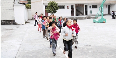 万阜乡孩子们的体育课缺乏各种体育器材。