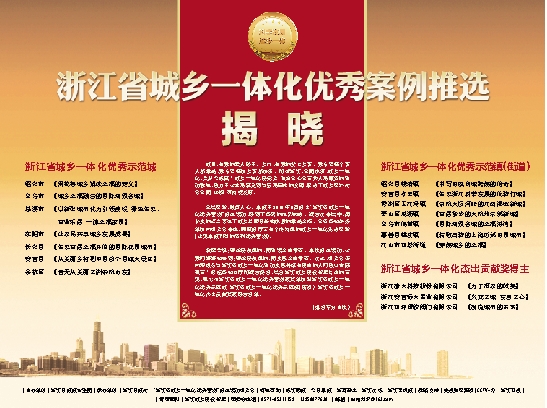 │主办单位│浙江日报报业集团│承办单位│浙江日报社 “浙江省城乡一体化优秀案例”推选活动组委会│媒体互动│钱江晚报 今日早报 浙商杂志 浙江在线 浙江手机报│战略支持│央视财经频道(CCTV-2) 浙江卫视│