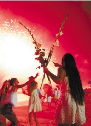 1月1日,在巴西里约热内卢科帕卡巴纳海滩上,人们迎接新年到来。