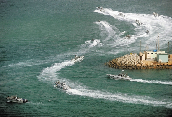 伊朗海军在霍尔木兹海峡附近进行军事演习。 视野网供图