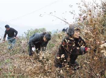本报永嘉1月2日电 记者 包璇漪 报道组 叶圣义 车子下了诸永高速,爬上盘山路,穿过长长的隧道,才看到昆阳的山头。光山垅上,农民潘教锡正带着五六个同村人在梯田除草。除去枯黄的杂草就可以看清,这里种植的是一株株金银花。今年春天,这里300多亩金银花就要吐出碧绿的藤蔓,5月份就可以采摘鲜花了。 林永龙70岁了,抡起锄头,却能看出还是个种田的“好把式”。前两天,药材公司老板廖祝弟给他们开工资。在山上辛苦了一年,林永龙算算有7000多元工资。 这里是永嘉县绿宇药材有限公司的种植基地,金银花是从山东引种来的良种。当地农民农闲的时候,在药材田打工,每人每天能挣70元至90元的工钱。 “我们永嘉山清水秀没有污染,这里的前胡、龙胆草、钩藤,很稀有,好多制药厂抢着要。” 廖祝弟一边拿出黑龙江“葵花药业”刚跟他签订的中药材延胡索采购合同,一边自豪地说。 “绿宇”是永嘉县农业龙头企业,廖祝弟从事中药种植近30年,拥有1700多亩药材种植基地。去年,最让廖祝弟高兴的事,是永嘉农合行昆阳分理处以基准利率贷给他130万元。“手续3天内全部办完,让我及时在价格上涨前采购到了金银花苗。” 元旦,廖祝弟投资600万元的中药材植物标本园,在楠溪江中下游的沙头镇响山村桐岙山动工。这是一个占地30亩的标本园,将引种永嘉当地的野生中药材品种400多种。植物园周边的120亩土地上,还要建设一个中药材规范化种植示范基地,给药农和学生参观、科普和实习。 “我多年的心愿就要实现了。夏天,你们可以到我的中药植物园参观。”廖祝弟说。 永嘉境内中药材资源丰富,有中药材1390多种,其中野生药材1200多种。廖祝弟想借建植 |