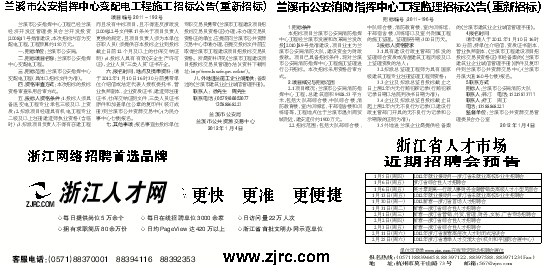 兰溪市公安指挥中心变配电工程施工招标公告(重新招标)