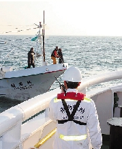 1月8日,名为“新芳财”的台湾籍渔船在广东汕尾附近海域发生机器故障遇险后,在粤港台三地搜救部门协作努力下,最终被南海救助局救助船“南海救113”轮拖带至汕尾陆丰甲子港安全水域,船上6名渔民全部获救。图为“南海救113”轮在对“新芳财”进行接拖救助作业。 新华社发 |