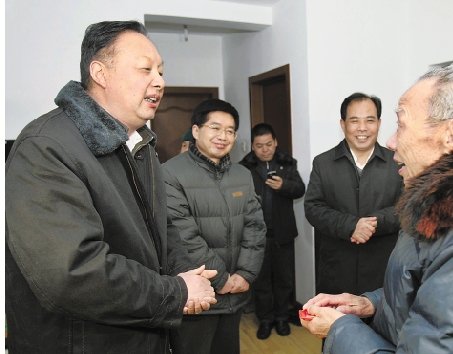 1月8日,省委常委、宣传部长茅临生和副省长郑继伟一行来到丽水市莲都区,走访慰问贫困户、优抚对象、烈属家庭代表和敬老院老人。 官伟 摄