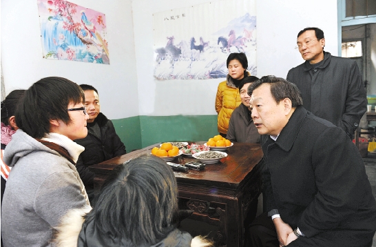 1月8日下午,省委副书记、代省长夏宝龙来到嘉兴市秀洲区王店镇庆丰村3组村民于雪坤家走访慰问。于雪坤2003年发生车祸,头部手术后,留有后遗症,妻子钟术莲肢体残疾,两个女儿尚在读书,家庭条件十分困难,享受低保待遇。夏宝龙向他们送上慰问金和慰问品,并关切地说,党和政府一直记挂着你们,你们要充满信心,一定要把孩子培养好,生活一定会越来越好。