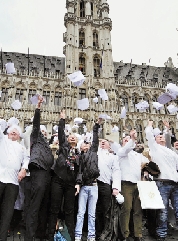 1月9日,一场别开生面的扔厨师帽活动在比利时首都布鲁塞尔的大广场举行,除了专业厨师外,市民和游客均可参与。据主办方称,当天共有617名参与者成功扔起厨师帽,打破了吉尼斯世界纪录。 新华社发