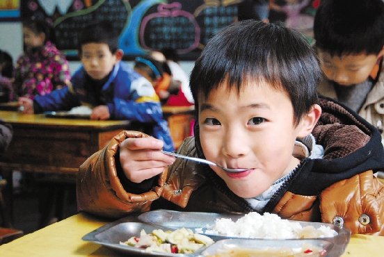 建德小学生吃上“营养午餐”。 宁文武 摄(本报资料照片)