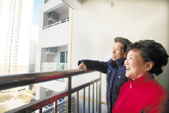 在外租房近八年的温州市鹿城区拆迁户徐新妹和老伴,终于站在了自己新房子的阳台上享受冬日暖阳。 陈翔 摄