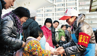 清晨,宁波城市建设系统的8名义工自发组织来到火车东站,为旅客送上一碗碗爱心粥。 胡学军 摄
