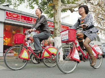 人大代表“绿色”出行。 本报记者 钟昊 董旭明 摄