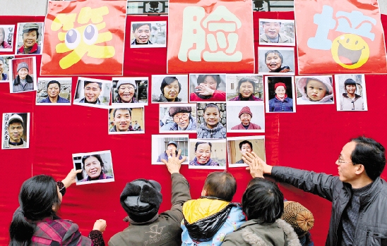1月17日,本报记者来到淳安县宋村乡硖石村,为当地100多名村民拍摄笑脸,并现场打印成照片组成“笑脸”墙。