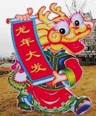 随着龙年春节临近,仙居县制作各式各样的“龙画”卡通安放在县城街头,营造出浓郁的节日气氛。 王华斌 摄