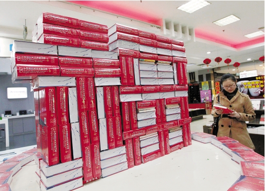 新华书店温州书城,以书作“福”,增添了节日氛围。 郑鹏 摄