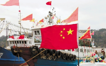 1月22日,玉环县灵门、栈台、鸡山渔港,国旗、红旗、彩旗迎风飘扬,到处洋溢着节日气氛。 吴达夫 摄