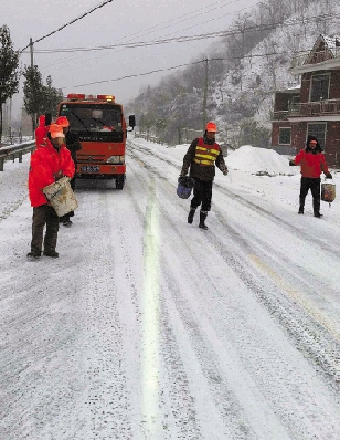1月22日,临安市交通局组织抢险队员在公路上除雪破冰,保障公路畅通。