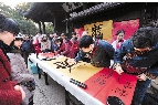 正月初一,绍兴兰亭景区推出“龙年写龙”活动,吸引众游客参与。 袁云 摄