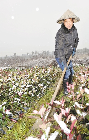 1月24日,金华白龙桥镇黄家村村民陈樟勋在自家苗木基地开挖排水沟。 本报记者 杨晓轩 摄