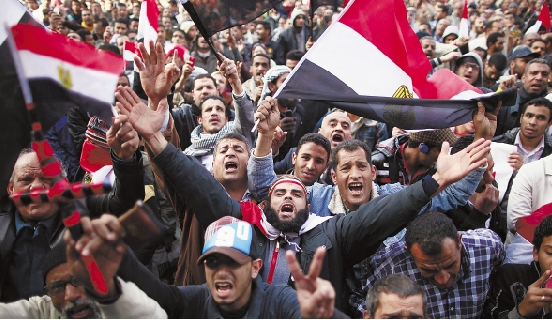 1月25日,在埃及首都开罗,大批示威者聚集在解放广场进行抗议游行。 新华社发