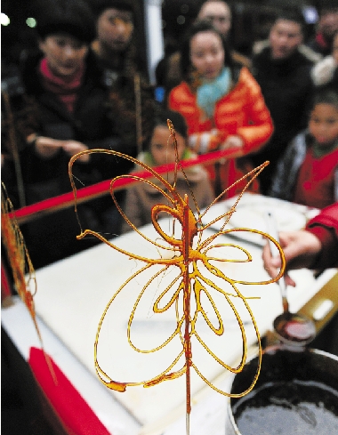 1月26日,杭州清河坊街上,捏泥人、吹糖人、画糖画等民俗活动受到游客欢迎。