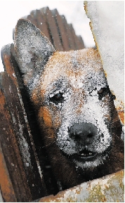 1月26日,在罗马尼亚首都布加勒斯特东南部的克采卢,一只狗在墙边避雪。罗马尼亚南部大片地区日前遭遇今冬以来最大暴风雪。持续两天的大雪致使多地公路交通瘫痪,大量航班和列车车次延误甚至取消,近千所学校停课,当地居民的工作和生活受到严重影响。 新华社发 |