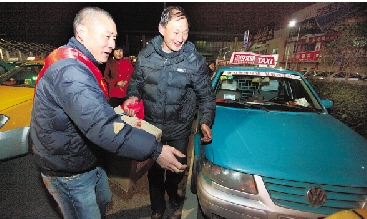 宁波市80辆出租车等候在宁波火车东站,为旅客提供服务。