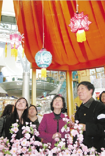 李湘满(右二)和他的花灯。 张肖斌 摄