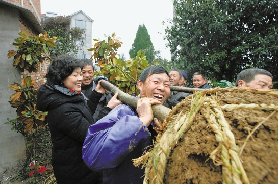 1月28日,衢州衢江区林业局干部把一车树苗拉到樟潭街道平杨村,送给农民美化家园。该区已给41个村送去广玉兰、红豆杉、银杏等10多个品种的树苗,共计两万多株。 记者 邵全海 通讯员 吴春华 摄