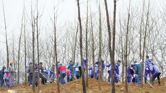 1月29日,春节长假过后上班首日,宁波北仑区200余名团员青年、志愿者和干部群众一起参加义务植树劳动。 本报记者 董旭明 通讯员 张芳芳 摄