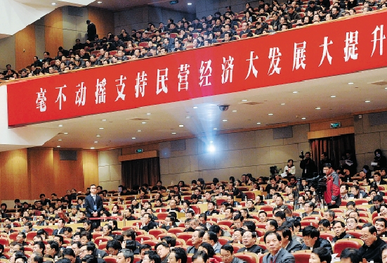 1月30日上午,省委、省政府以电视电话会议的形式召开全省民营经济大会,大会主会场设在省人民大会堂,共有一万多人参加会议。下午,还举行了全省民营经济大会暨项目签约仪式,会上公布了609个2012年浙江省民营经济重大投资项目,现场签订项目33个。