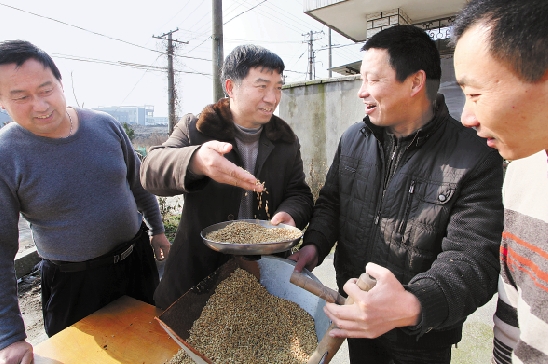 2月1日,宁波江北区农林水利局副局长张兆康(左二),来到慈城镇白米湾村种粮大户曹建军家,察看早稻备耕情况,并对浸种育秧要点作了具体指导。春节后,该局农技人员分头到田间地头,了解农户抛秧盘、化肥、薄膜等农资储备情况,积极做好春耕备耕前期调研和准备工作。 胡建华 汪佳丽 包和平 摄 |
