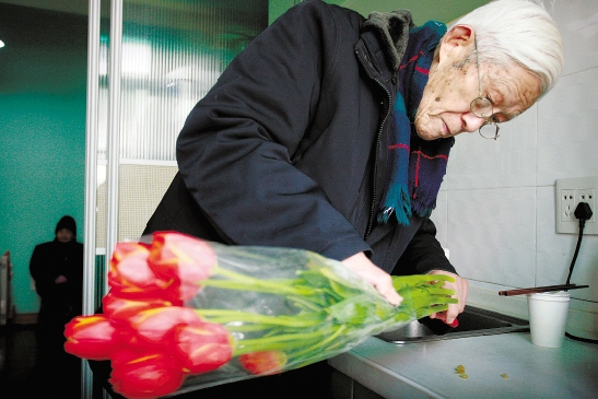 花买来,老爷子总要将根部裁剪一下,送给爱人。