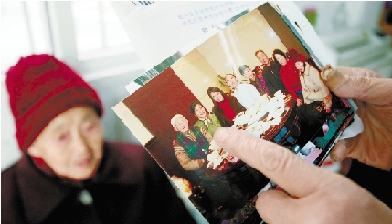 与孩子们一起过年的照片,老爷子在冲印店看了又看。