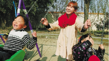 与小朋友一起荡秋千,柴李悦也有舞蹈动作。