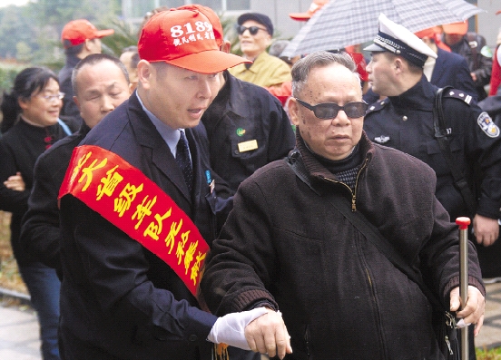 周建平(左)参加公益活动。