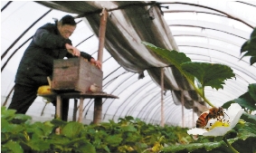 蜜蜂授粉对提高农产品质量效果明显。授粉后的草莓,果形圆整,畸形果率下降40%以上,草莓产量比人工授粉的增产50%。