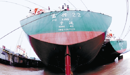 保障浙江电煤供应的“浙能水师”再添新军——2月28日上午10时18分,浙能富兴海运公司载重量为5.75万吨的“富兴22”号散货船在舟山五洲船厂下水首航。该船的首航,使浙能海运船队运力总量达52.5万吨,为全省能源安全提供了保障。 朱将云 丁毅 摄