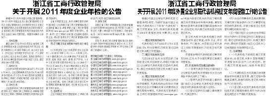 根据《中华人民共和国公司登记管理条例》、《中华人民共和国企业法人登记管理条例》、《合伙企业登记管理办法》、《外商投资合伙企业登记管理规定》和《企业年度检验办法》等有关规定,全省各级工商行政管理机关将对我省各类内外资企业进行2011年度年检。现就有关事项公告如下: