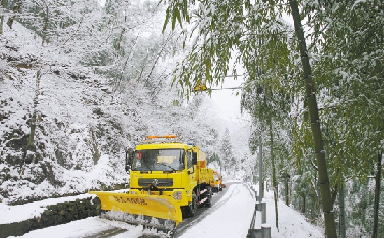 昨天一早,安吉县205省道青临线积雪厚达8厘米。 夏鹏飞 摄