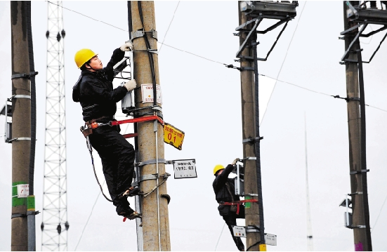 2月29日,新昌电力员工在大市聚镇地头村冒雨检修电力线路。在春茶采摘旺季到来之前,新昌县供电局改造重点产茶村42.5公里线路和46个配变台区,以满足炒茶机满负荷运转需要。