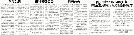 三、招标文件的获取:招标人将派人于2012年3月2 日至3月8日在龙游县招投标中心集中出售招标文件。