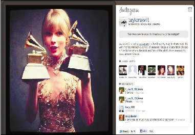 泰勒·斯威夫特在Twitter上秀格莱美奖杯。