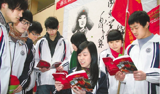 3月3日,浙江农林大学学生在阅读刚刚领到的《雷锋日记》。当天,浙江农林大学专门购买了一批《雷锋日记》赠送给学生。 陈胜伟 摄