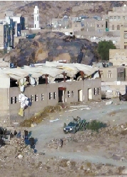 3月3日,也门士兵在南部贝达省汽车炸弹袭击现场警戒。