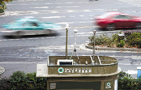 杭州首个环湖道路环境空气监测站。它可以实时监测机动车排放的10多种污染物,特别是细颗粒物排放情况及环湖机动车流量。 董旭明 林云龙 摄