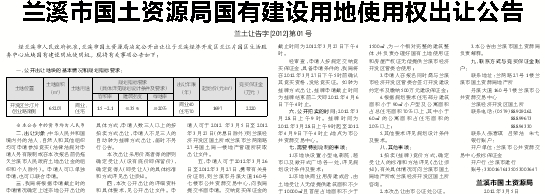 兰溪市国土资源局国有建设用地使用权出让公告