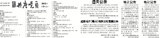 湖州南太湖水利水电勘测设计院有限公司(原湖州市水利水电勘测设计院)所持有的浙江省水利建设工程施工图设计文件审查资格证书(资质证书编号:浙水设审2192012号)及浙江省水利建设工程施工图设计文件审查资格专用章遗失,特此声明作废!